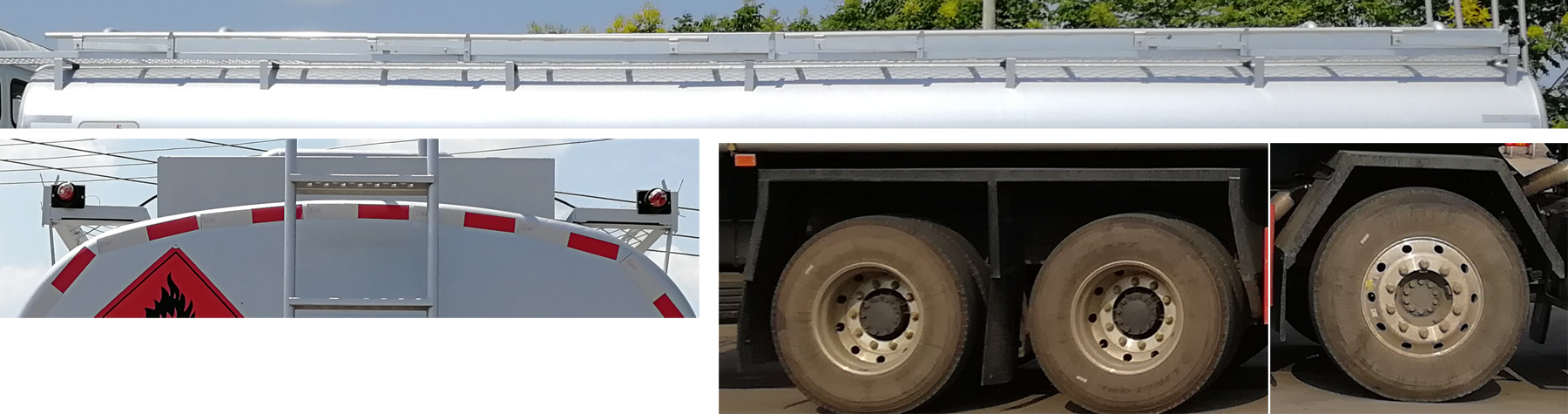 油漆: 灰色,貼反光條、反光帶,三個(gè)“易燃液體”標(biāo),安全告示。