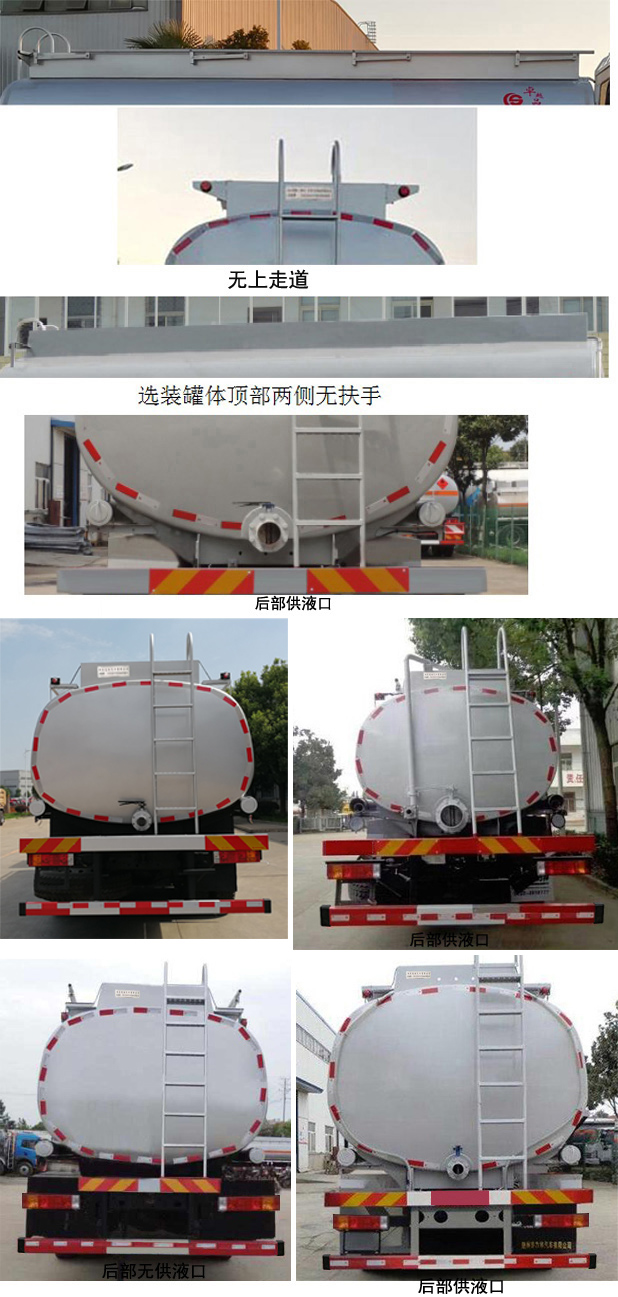 備注隨底盤選裝同系列駕駛室,選裝進(jìn)氣口樣式。選裝罐體上部無上走道,有扶手或無扶手,后示廓燈架樣式;選裝罐體后部供液口閥門。