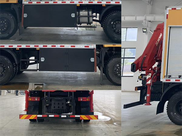其它:1、該車主要用于搶險救災(zāi)、賽事活動等的應(yīng)急照明支援;主要專用裝置:照明系統(tǒng),發(fā)電機組,吊機等;廂體頂部密閉,不可開啟。2、側(cè)防護為裙邊結(jié)構(gòu),材料Q235;后防護材料采用Q235,螺栓連接,截面尺寸125×60mm,下邊緣離地高485mm。3、ABS型號/生產(chǎn)廠家:3631010-C2000/東科克諾爾商用車制動系統(tǒng)(十堰)有限公司。