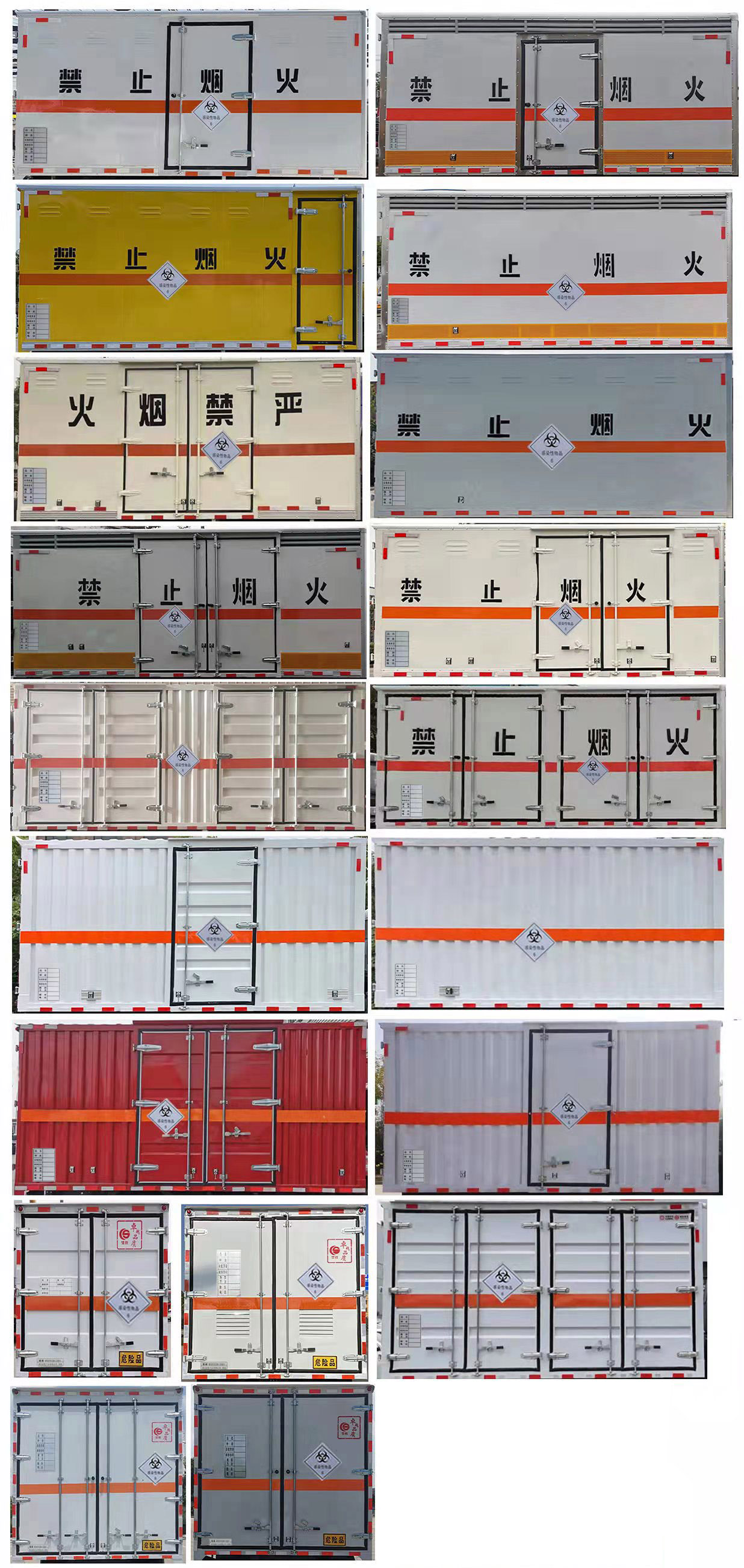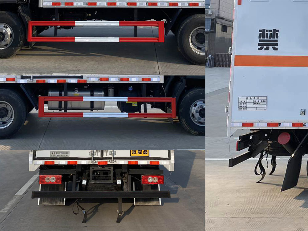 其它:1、該車適用于運輸危險品。廂體頂部封閉不可開啟。運輸具有獨立容器(瓶)包裝的物品,運送危險物品類項號:6.1,6.2。2、側,后防護材料均為Q235,螺栓連接;后防護截面尺寸100×50mm,下邊緣離地高410mm。廂體側面選裝開門型式及位置,選裝不帶側開門,選裝瓦楞板結構;選裝百葉窗。3、隨底盤選裝排半駕駛室。僅選用排氣管前置、限速裝置(限速80km/h)、前輪盤式制動及子午線輪胎的底盤;轉向輪裝備輪胎爆胎應急防護裝置。安裝帶衛(wèi)星定位功能的行駛記錄儀。ABS系統(tǒng)型號:ABS-VI.E;生產(chǎn)企業(yè):廣州瑞立科密汽車電子股份有限公司;ABS系統(tǒng)型號:ABS-E;生產(chǎn)企業(yè):威伯科汽車控制系統(tǒng)(中國)有限公司;ABS系統(tǒng)型號:ABS8.8 ECU 24V,生產(chǎn)企業(yè):東科克諾爾商用車制動系統(tǒng)(十堰)有限公司;發(fā)動機/油耗值(L/100km)對應關系為:CY4SK261/16.09,D30TCIF1/16.19,F2.8NS6B156/15.39,F3.8NS6B156/14.90??蛇x裝ETC車載裝置。