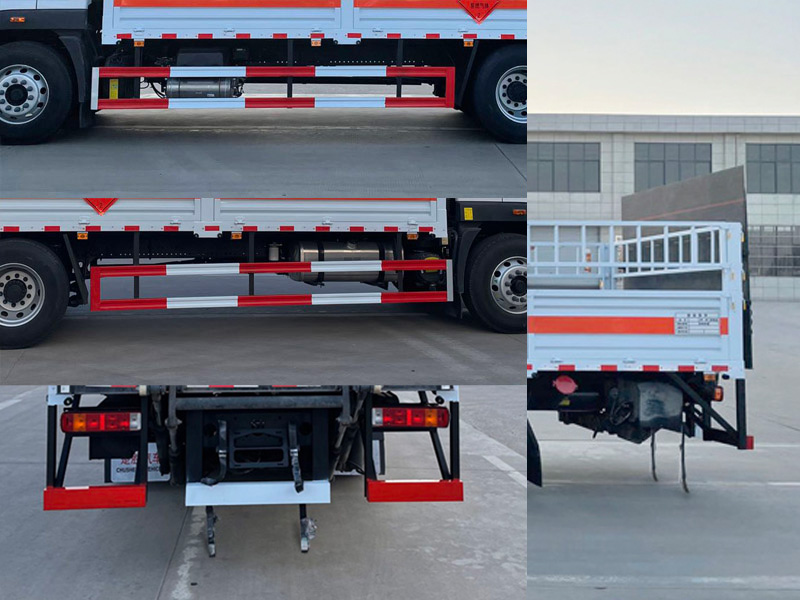 | 其它: | 1、該車適用于運(yùn)輸危險(xiǎn)品。運(yùn)輸具有獨(dú)立容器(瓶)包裝的物品,類項(xiàng)號(hào):2.1,2.2。2、側(cè),后防護(hù)材料均為Q235,側(cè)防護(hù)螺栓連接;后防護(hù)焊接,截面尺寸120×50mm,下邊緣離地高490mm。選裝后部無(wú)尾板時(shí),后防護(hù)材料為Q235,焊接,截面尺寸120×50mm,下邊緣離地高490mm。選裝欄板樣式。3、僅采用軸距(mm):4700,5150。隨底盤(pán)選裝駕駛室,選裝電瓶、尿素罐、儲(chǔ)氣筒、后處理位置。僅選用排氣管前置、限速裝置(限速80km/h)、前輪盤(pán)式制動(dòng)及子午線輪胎的底盤(pán);安裝帶有衛(wèi)星定位功能的行駛記錄儀。該車轉(zhuǎn)向輪安裝輪胎爆胎應(yīng)急防護(hù)裝置,后軸采用空氣懸架。選裝ETC。EBS系統(tǒng)型號(hào)/生產(chǎn)廠家:EBS 5/克諾爾制動(dòng)系統(tǒng)(大連)有限公司,CM-EBS/廣州瑞立科密汽車電子股份有限公司。采用的發(fā)動(dòng)機(jī)與油耗值(L/100Km)對(duì)應(yīng)關(guān)系為:F4.5NS6B220/24.4,B6.2NS6B210/26。尾板收起狀態(tài)水平長(zhǎng)度為290mm,尾板質(zhì)量550kg。 | ||
