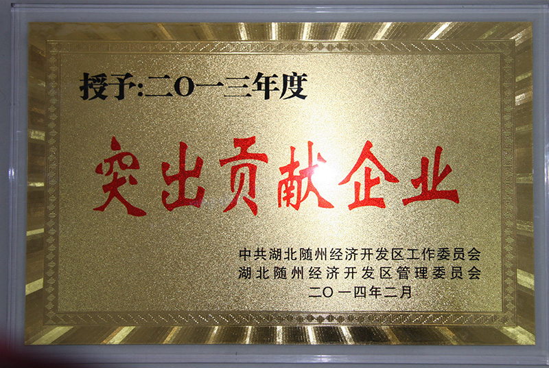 廈工楚勝榮獲2013年度隨州市貢獻(xiàn)突出企業(yè)稱號(hào)。