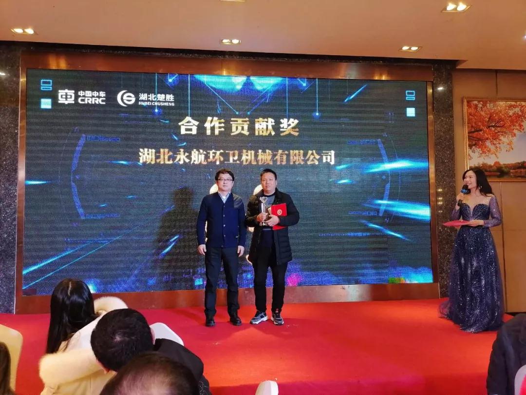 湖北楚勝公司總經(jīng)理**小康**先上臺致辭。**總表示,2019年是充滿挑戰(zhàn)和機遇的一年,在剛剛過去的一年里,湖北楚勝收獲了累累碩果,成績斐然,2020年,湖北楚勝將繼續(xù)砥礪前行,整合所有資源,抓住發(fā)展機遇,共創(chuàng)更美好的未來。本次盛會設(shè)立了合作貢獻獎一名、**經(jīng)銷商獎十名,銳意進取獎五名,中車**董事長顧一峰、湖北楚勝公司董事長張?zhí)胤?、楚勝公?/span>總經(jīng)理**小康分別為獲獎?wù)咭灰活C獎。
