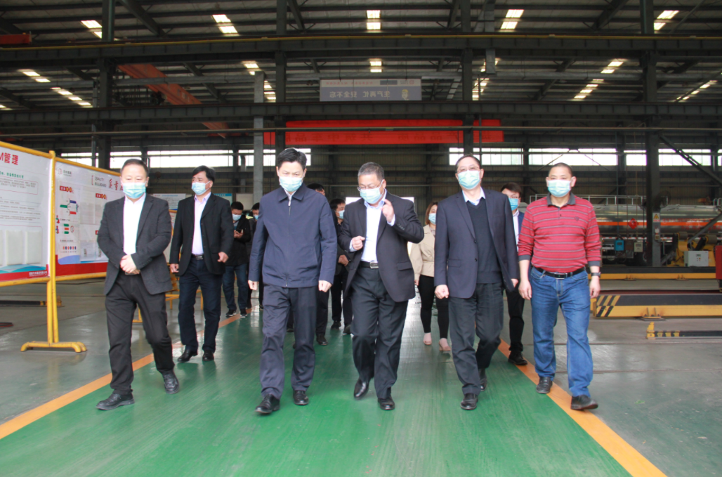 市領(lǐng)導(dǎo)一行參觀了公司的罐式車、自卸車、備料中心等生產(chǎn)車間和正在建設(shè)的創(chuàng)新工廠項(xiàng)目。