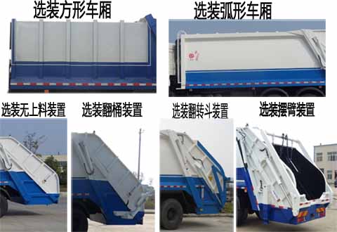| 配置 | 1、該車主要專用裝置由箱體、壓縮系統(tǒng)組成,用于垃圾的收集與清運(yùn)。該車可選裝方形或弧形箱體,選裝全密封蓋裝置,選裝后部工作裝置。選裝工作裝置時(shí),外形長(mm)/后伸(mm)/整備質(zhì)量(kg)對應(yīng)關(guān)系:①無上料裝置:9950/-/14800;②全密封斗裝,擺臂裝置:10150/200/15150;③翻桶裝置,半密封斗裝置:10350/400/15150。2、側(cè)防護(hù)材料采用Q235,螺栓連接;后防護(hù)由專用裝置替代,下邊緣離地高500mm。3、隨底盤選裝前圍和燈具,選裝寬體保險(xiǎn)杠,腳踏板。安裝帶有衛(wèi)星定位功能的行駛記錄儀。ABS系統(tǒng)生產(chǎn)廠家:長春瑞立科密汽車電子有限公司,型號:CM4XL。發(fā)動機(jī)與油耗值(L/100km)對應(yīng)關(guān)系:CA6DK1-26E6/32.5,CA6DK1-28E6/32.5,CA6DK1-32E6/32.5。 | ||