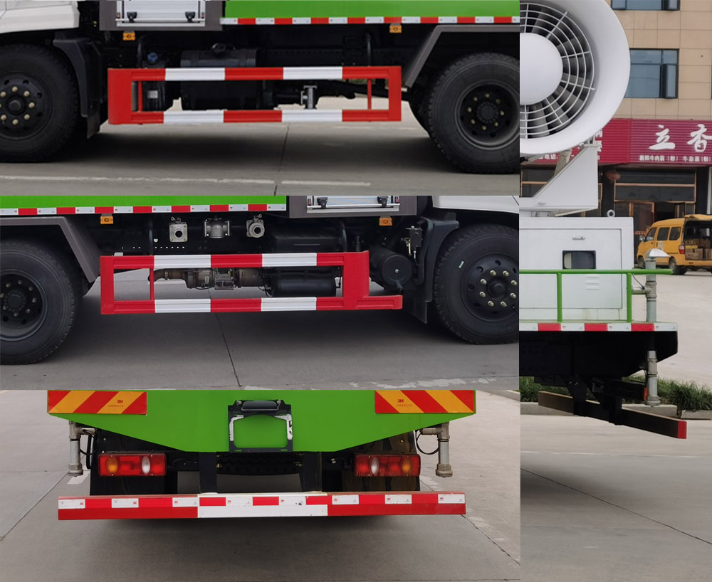 配置  1、該車主要用于城市街道的噴霧抑塵,主要專用裝置為噴霧總成。罐體有效容積:7.35立方米,罐體外形尺寸(長×寬×高)(mm): 2850×2500×1500。2、側(cè)、后防護(hù)材料均為Q235,螺栓連接,后防護(hù)截面尺寸(mm)120×60,下邊緣離地高450mm。3、僅選用3950mm軸距。隨底盤選裝駕駛室。ABS型號(hào)/生產(chǎn)廠家:3631010-C2000/東科克諾爾商用車制動(dòng)系統(tǒng)(十堰)有限公司,ABS 8/東科克諾爾商用車制動(dòng)系統(tǒng)(十堰)有限公司,4460046450/威伯科汽車**系統(tǒng)(**)有限公司。