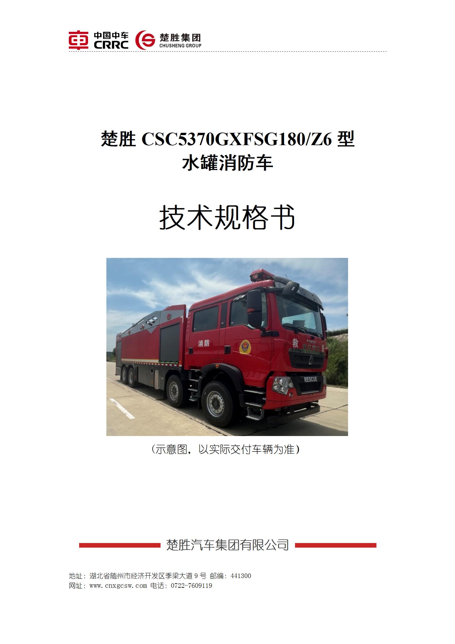 楚勝牌CSC5370GXFSG180/Z6型水罐消防車